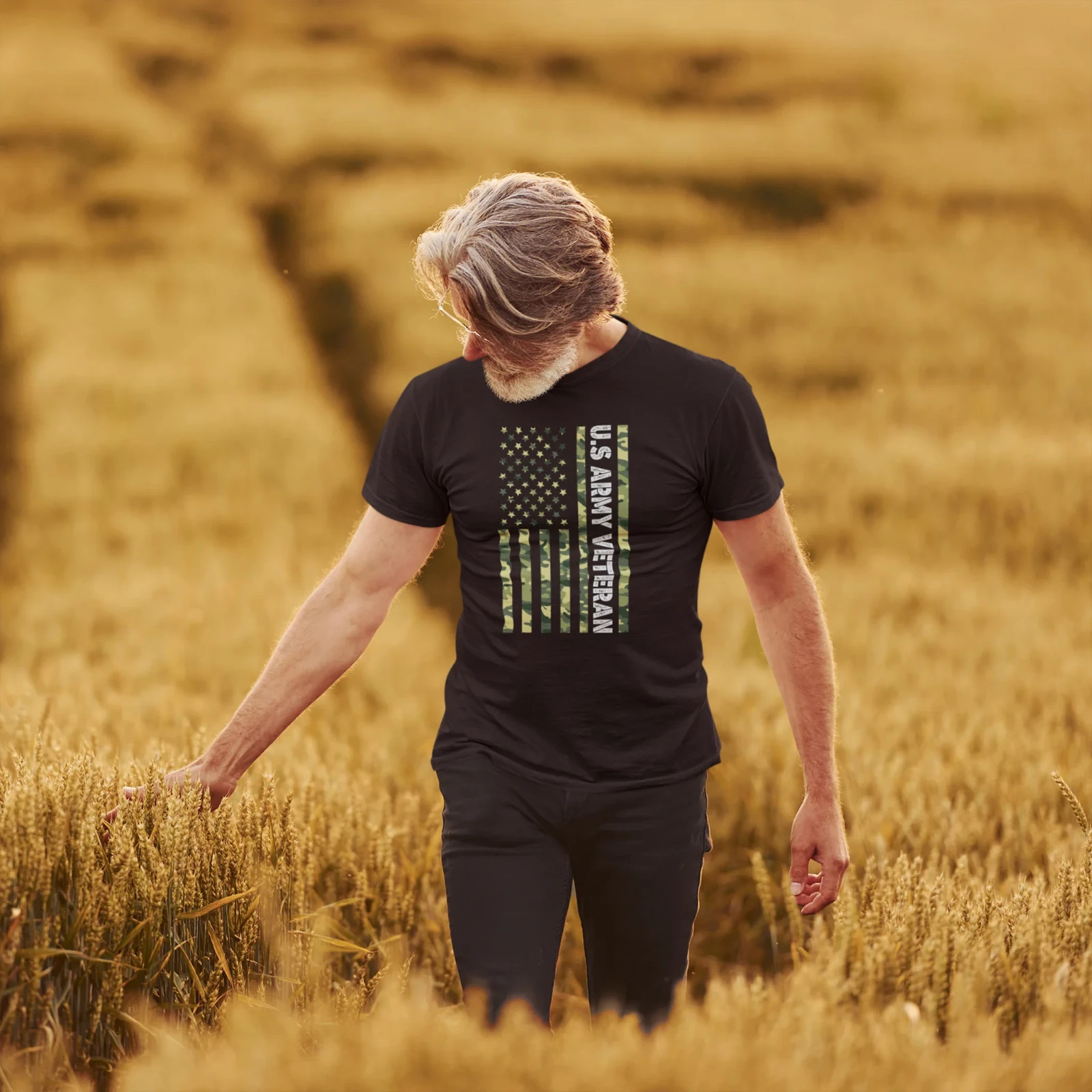 This US Army veteran Text Printed T-Shirt for men is perfect for showing your pride and support for our military veterans. Made from high-quality materials, this t-shirt is comfortable and durable. Its bold text design makes a statement and is great for everyday wear or special occasions. Overview: This heavy cotton tee is the basic staple of any wardrobe. It is the foundation upon which casual fashion grows. The specially spun fibers provide a smooth surface for premium printing vividity and sharpness. No side seams mean there are no itchy interruptions under the arms. The shoulders have tape for improved durability. Fabric: Made with medium fabric (5.3 oz/yd² (180 g/m²)) consisting of 100% cotton for year-round comfort that is sustainable and highly durable. Fabric blends: Solid colors are 100% cotton; If there are Heather colors and Tweed these are 50% cotton, 50% polyester; Sport Grey and Antique colors are 90% cotton, 10% polyester. Fit: The classic fit of this shirt ensures a comfy, relaxed wear while the crew neckline adds that neat, timeless look that can blend into any occasion, casual or semi-formal.