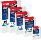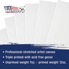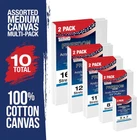 Professional Artist Quality: Multipack of 10 Assorted Medium Size Canvases, 2 Each 5x7, 8x10, 11x14, 12x16, and 16x20 Inches. 3/4" thickness profile 12-ounce triple gesso primed stretched canvases that are suitable for all types of painting media and all skill levels of artists. 100% Cotton Canvases: Pure cotton canvases with medium grain, so they hold the paint well without absorbing it and keep their natural tone and glossiness. Durable Construction: These premium canvases are hand-stretched tightly onto kiln-dried pinewood stretcher bars and back stapled to create clean edges. Firm and sturdy lightweight frames are easy to store, carry, and hang. The stretcher bars come from environmentally managed forests. Heavy-Weight: 12-ounce finished weight. Triple primed with acid-free acrylic titanium gesso, providing the perfect surface for painting masterpieces. Multi-Use: Ideal for use with acrylic, oil, watercolor, gouache, tempura, pouring paint, airbrush paint, and other wet or dry painting media. Ideal ready-to-paint canvases for art studios, art students, class projects, painting parties, or anyone that enjoys creating pieces of art. Used and loved by aspiring artists, art students, and professional artists!