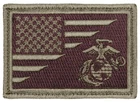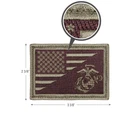A morale patch featuring the classic United States Marine Corps logo and the American Flag. Features The Classic USMC Logo And American Flag Rayon Threading And Soft Cotton Backing Strong Nylon Hook So You Can Attach Too Loop Fielding Attaches Easily To Hat Or Jacket Tactical Patch Measures 3 3/8" X 2 3/8"
