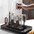 Features: 1. High borosilicate glass material: This glass cup is made of high borosilicate glass, which is known for its excellent heat resistance and impact resistance. It is not only safe and durable, but also highly transparent, crystal clear, allowing you to enjoy the drink while also appreciating its pure color. 2. Creative styling design: The cup cleverly combines walnut wood with high borosilicate glass to create a modern and retro aesthetic. This unique design not only enhances the beauty of the cup, but also makes it a fashionable decoration on your desktop. 3. Humanized leak proof design: Considering the convenience in daily life, this glass cup specially adopts a humanized design to ensure that there will be no leakage during use. Don't worry about the beverage spilling out. 4. High temperature resistance performance: The high temperature resistance of high borosilicate glass allows this glass cup to withstand high temperature environments, making it suitable for holding hot or cold drinks without worrying about cracking or deformation due to temperature changes, making use more reassuring. 5. Fashionable lifestyle atmosphere: This glass cup adds a touch of elegance to your daily life with its fashionable design and exquisite craftsmanship. It is not only a practical drinking utensil, but also a symbol of your taste in life. Whether used at home or in the office, it can demonstrate your pursuit of quality of life. Specifications: Size: 11.5 * 8 * 8cm Capacity: 350ml Function: High temperature resistance Style: Modern and minimalist Product List: 1 x glass cup On Dec 12, 2024 at 02:24:41 PST, seller added the following information: