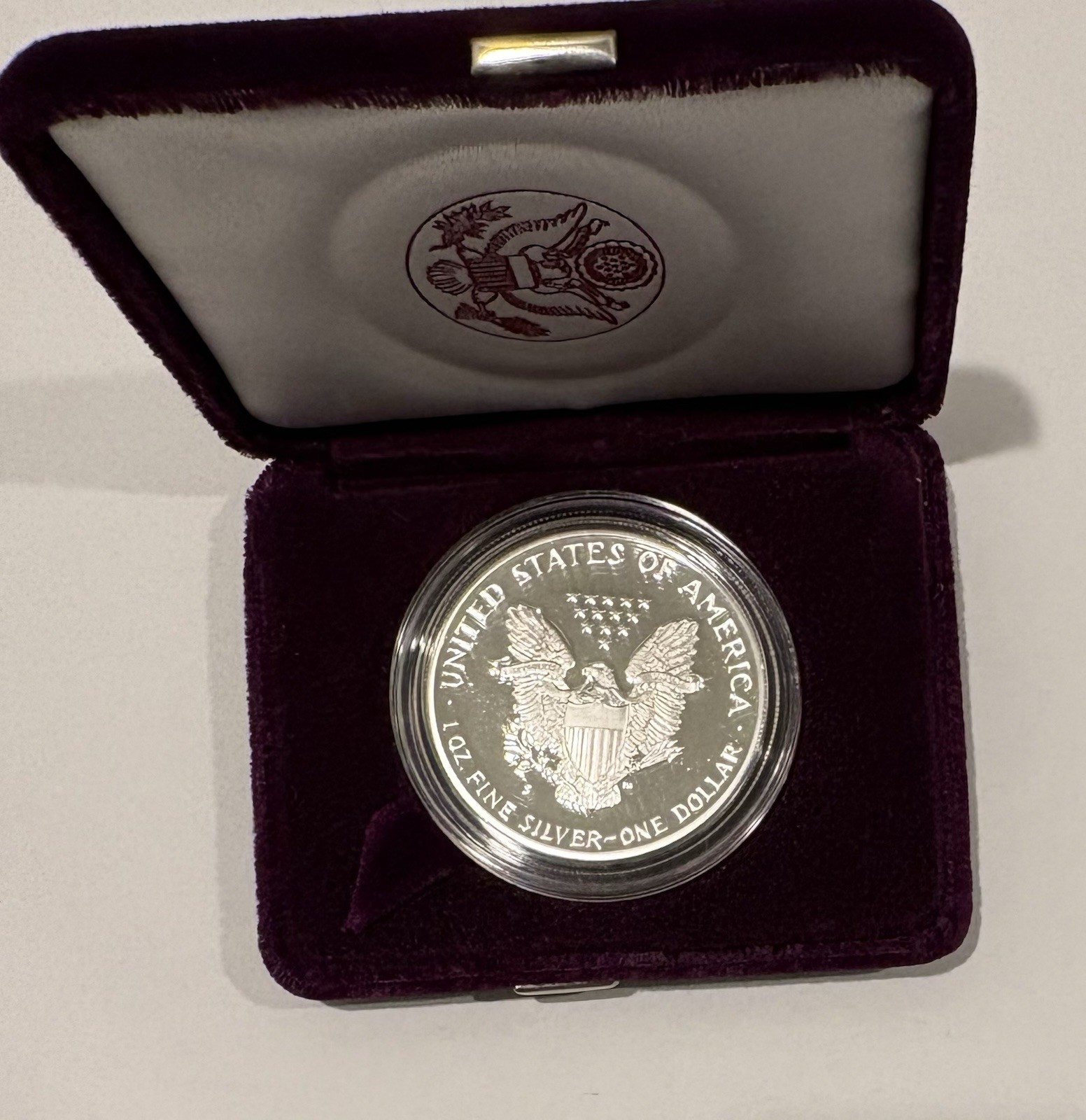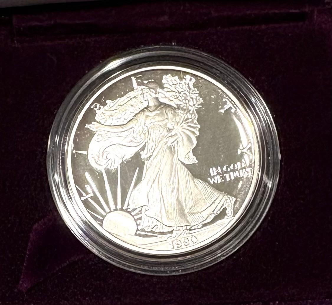 The U.S. Mint American Silver Eagle 1990 S Proof Coin is a highly sought-after rare collector's item made of .999 fine silver. This 1 oz coin features the iconic American Eagle design and is struck in proof quality at the U.S. Mint. Although it is not certified, its high precious metal content makes it a valuable addition to any coin collection, especially for collectors interested in bullion coins and silver coins.
