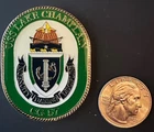 This Navy Challenge Coin features the USS Lake Champlain (CG-57) and is a great addition to any militaria collection. The coin is an original item. The coin is part of the Navy Challenge Coin series and is a featured refinement of the collection. It is perfect for collectors who are interested in adding an authentic and unique item to their collection. Ingenuity Daring Discipline Shipping to US locations only,