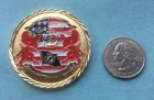 USS MILIUS (DDG-69) CHIEF PETTY OFFICER (CPO) coin. Pre-owned "used" but in great condition. Quarter coin is for dimension reference only and not included in sale. Please look closely for possible edge wear, surface wear, scuffs, scratches, scrapes, dings, chips, dents, divots, bent, color loss, enamel loss, oxidation, patina, soiling, or corrosion. The pictures are part of the description. The images you see are actual pictures of the item taken by me - I do not use stock, borrowed, or internet pictures. What you see is what you'll get. Coin is maintained in a vinyl protective case and only removed to take pictures. Comes from a smoke, pet, and virus free environment. This coin was personally acquired by me during my 28 year US Naval career and will make a fine addition to your collection. I will carefully package and ship the day after purchase/payment received via USPS First Class Mail unless it falls on a Friday, Saturday, Sunday, or holiday in which case I will ship on the following business day. Tracking information will be provided via eBay. I don't gouge on shipping. If you buy two coins on the same day, I'll combine the shipping fees and upgrade you to USPS Priority Flat Rate Box. If you buy 3 or more coins, shipping will still upgrade to USPS Priority and I'll refund the difference. I will only ship to the United States or FPO/APO addresses. Please contact me if you have any questions regarding this item before you bid or buy. Thank you for looking.