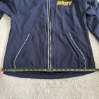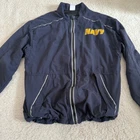 U.S. NAVY Running Drawstring Zip Up Windbreaker Jacket Navy Blue Size S Authentic U.S Navy running jacket Size S Unisex Windbreaker style Inner lining Shell: 100% Nylon Lining: 100% Polyester Drawstrings are in the pockets to adjust to be fitted or loose NAVY across back and on front chest Zipper Excellent condition Zero signs of wear Measurements in last couple of photos *I also have a green Marines jacket listed. Same style and size. Would bundle for a discount ㅤ◡̈