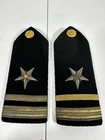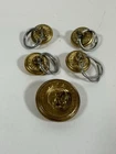 For sale pre-owned and vintage military insignia made for the US Navy in the 1960s. This insignia came from a khaki-colored Navy jacket. There are eight pieces in this bundle. This jacket was issued to the navy officer on November 4, 1966. Following items included in the bundle: 2 shoulder devices which bear the Lt. Junior Grade rank and the line officer star. 4 gold tone buttons which came off of pockets 1 gold tone button that was used to button the jacket up 1 label that was sewn into the jacket at time of manufacturing