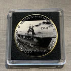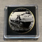 US Navy CHALLENGE COIN- WW2 -USS HORNET CV-8 Aircraft Carrier w/Case Fantastic Coin! Great Gift! Ships within 24 hours of ordering-USPS first class with tracking. We also offer combined shipping-Use the add to cart feature! Please visit our store for more great items! ================================================= ======= USS Hornet (CV-8) , the seventh U.S. Navy vessel of that name, was a Yorktown-class aircraft carrier of the United States Navy. During World War II in the Pacific Theater, she launched the Doolittle Raid on Tokyo and participated in the Battle of Midway and the Buin-Faisi-Tonolai raid. In the Solomon Islands campaign, she was involved in the capture and defense of Guadalcanal and the Battle of the Santa Cruz Islands, where she was irreparably damaged by enemy torpedo and dive bombers. Faced with an approaching Japanese surface force, Hornet was abandoned and later torpedoed and sunk by approaching Japanese destroyers. Hornet was in service for one year and six days, and was the last US fleet carrier ever sunk by enemy fire. For these actions, she was awarded four service stars and a citation for the Doolittle Raid in 1942, and her Torpedo Squadron 8 received a presidential unit citation for extraordinary heroism for the Battle of Midway. Her wreck was located in late January 2019 near the Solomon Islands
