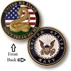 United States Navy Navy - Don't Thread on Me $12.95..... (picture shows front & back of coin) Custom selected by a sailor, for a sailor! This is a great gift for those that have made the transition from civilian to becoming a sailor in the world's greatest Navy... Hooyah... Go Navy! We are retired Navy owned and operated business. We are very knowledgeable with all facets of the Navy and Navy life - We lived it! We are not just a vendor trying to sell you something. We live and breath Navy! We love sailors and family members. This is a great gift for those that have made the transition from civilian life to becoming a sailor in the world's greatest Navy.... This coin is 1-3/4 inches. We ship immediately! Each coin is $12.95. Hooyah.... Go Navy!!!!... PIRGifts is action oriented! We love Sailors! Sorry, we do not send to any international address. ADD ON's: Coin case: Available in: Navy Blue or Onyx Black These coin cases look great in any sailors barracks room. These were specially designed by PIRGifts to display our coins. As shown, the coin can be presented flat to your sailor. Once your sailor arrives to their barrack room, the coin can be displayed at a 45 degree angle using the special notch designed in the case to allow the sailors to touch, inspect, and proudly discuss the history of "their" challenge coin. Other sailors can inspect the coin which is a proud Navy tradition. The coin brings on great stories, and are great conversation starters. Your sailor will be so proud!!! Priced at $9.99 Example of how the coin looks inside the new presentation case. Premium Rosewood Coin case: Available in: 1 or 2 coin case Glossy Rosewood finish. Custom designed by PIRGifts. A perfect coin box for men and women. This case fits all 1 3/4 (44mm) coins. This is an unforgettable gift that will always be treasured. Unique glossy Rosewood finish and is the perfect solution to display your family heirloom challenge coin collection. This stunning Rosewood challenge coin case is for those decreat customers that only want the best! Your challenge coin can either lay flat or stand vertical to beautifully display your challenge coin. The interior is lined with soft leatherette to protect your challenge coin from scratches. Sold as either a 1 or 2 coin slot case. To easily make it into a 2 or 4 coin slot case, just remove the removable soft leatherette top insert and replace the coin insert. (extra charge for insert) This Rosewood case makes an outstanding gift for recoginizing and honoring your sailor and their new career in the Navy. Priced at: 1 slot coin case: $17.99. (extra slot insert $1.99) 2 slot coin case: $21.99. (extra slot insert $1.99) Example of how a coin looks inside the Rosewood presentation case: Coin Protector For those sailors that want to carry their challenge coin with them. These will protect the enamel paint and keeps the coin free of scratches. Not cheap acrylic plastic! We designed and manufactured these exclusively with Polycarbonate (aka Trivex) plastic. Although it's a little more expensive, Trivex plastic is 10x more impact-resistant than normal acrylic plastic. It's the same plastic used for the lens in eye glasses. These coin protectors are lightweight and strong! 100% protection from the sun's harmful UV light. These protectors will fit 95% of the coins PIRGifts sells. Crystal clear, scratch resistant. non-yellowing design. Will not "accidently" open. To remove the coin, you will need a sharp, narrow item (such as a razor blade). Manufactured and designed to PIRGifts high quality standards. Priced at $2.99 Example of how the coin looks inside the coin protector. Note 1: Coin in picture is not included, just and example of how the protector looks. Note 2: These protector fit most, BUT NOT ALL, of our coins.