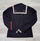 Exact Measurements: Chest - 36" Length - 24" There is no size on the tag since they were not added until 1944. The actual measurements match what would be considered a Small Short. Excellent condition, minimal wear. Issued to a 'C. E Striegel', as can be seen on the tag and inner waistband. Tag is also marked 'F A' next to rate. This along with the Petty Officer 3rd Class (PO3) Machinist's Mate (MM) patch likely indicates that the original owner was issued this jumper when they were still a Fireman Apprentice. Also features a Service Stripe/Hash Mark indicating four years of active duty service. 100% wool. Manufactured by Naval Clothing Factory, USA, 1943.