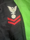 U.S. Navy Enlisted Dress Uniform - Original This is a complete U.S. Navy enlisted dress uniform consisting of a jumper top and bell-bottom trousers. Features: • Jumper Top: • Patch: Embroidered U.S. Navy eagle with globe and chevrons on the sleeve. • Decorative Details: White trim on the collar and cuffs. • Trousers: • Classic bell-bottom style with button fly. • Authentic and part of the original set. • Material: Durable wool fabric for both jumper and trousers, as used in original Navy uniforms. Condition: • Overall: Very good vintage condition. • Wear: Minimal visible signs of wear. • Defect: One minor defect located on the inner part of the collar, shown in the photos. • Authenticity: Verified as an original item from the U.S. Navy. This uniform is a fantastic collectible for military enthusiasts, historical costume collectors, or anyone seeking a genuine piece of U.S. Navy history. Don’t miss out on this rare piece of naval heritage! Please feel free to message with any questions. Detailed photos of all tags, insignias, and condition, including the collar defect, are provided.