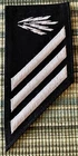 Here is a United States Navy rank rating badge for Radioman Seaman Patch. USN RMSN Striker, fully embroidered black specialty mark and chevrons on a white cotton material. This patch has been removed from a uniform. Excellent used condition, see photos.