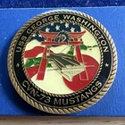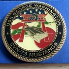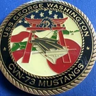 This US Navy challenge coin is a unique piece of militaria that would make a great addition to any collection. The coin features the iconic image of George Washington riding a mustang, and is inscribed with the words "US Navy" and "CV – 73". This original coin is a great example of the artistry and symbolism that is often found in challenge coins. The coin is in excellent shape and has been well-preserved over the years. It would be a great gift for any collector or enthusiast of military memorabilia. Add this piece of history to your collection today! Lot 6359