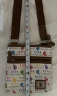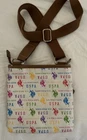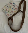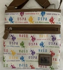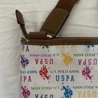 This US Polo Assn crossbody bag is a must-have for any fashion-forward woman. The bag features a square shape with a zipper closure and a brown crossbody strap that can be adjusted. It is made of white vinyl material with the colorful USPA logo. The bag has brown polyester lining and has 2 inner and 1 outer pocket for convenient storage. The bag is perfect for travel and casual occasions, and its classic and colorful theme will make you stand out from the crowd. Don't miss out on this hard-to-find bag! This bag is 8” wide and 8” high with a depth of 6”. There is some scratching on the silver US Polo Assn logo on the front, as well as some wear on the strap due to age. Please see all photos and message me with any questions. Thank you!!