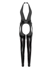 $ 4.61US Womens Wet Look Leather Babydoll Bodysuit Leotard Bodycon Lingerie Jumpsuit