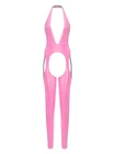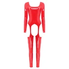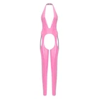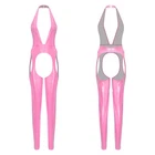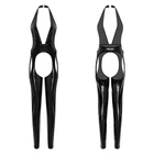 $ 6.87US Womens Glossy Shiny Open Crotch Bodystocking Cut Out Zipper Bodysuit Jumpsuit