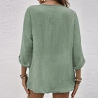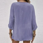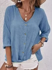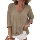 Baggy Tops T-Shirts Shirts Buttons Tees Blouse 3/4 Sleeve V-Neck Solid Casual Package:1 pcs blouse(Other Accessories are not included) Material:polyester Colors:khaki,rose red,purple,grey,green,blue Size:S,M,L,XL,2XL,3XL,4XL,5XL Sleeve Length:3/4 Sleeve Neckline:V-Neck Pattern:Solid Thickness:standard Style:Leisure,Retro,Europe,National,All-Match Season:Spring,Summer,Autumn Garment:Hand washing or machine washing,line dry. Attentions: 1.The Real Object May Exist Slightly Colors Differences Compared To Images As Different Computers Display.Caution If Minding,Thanks. 2.There Might Be A Manual Measuring 1-3 cm Error.Sorry For Any Inconvenience. 3.Please Prevail On Real Item, Model Images For Reference Only. 4.Attention!!!Please check the size chart carefully before placing the order.