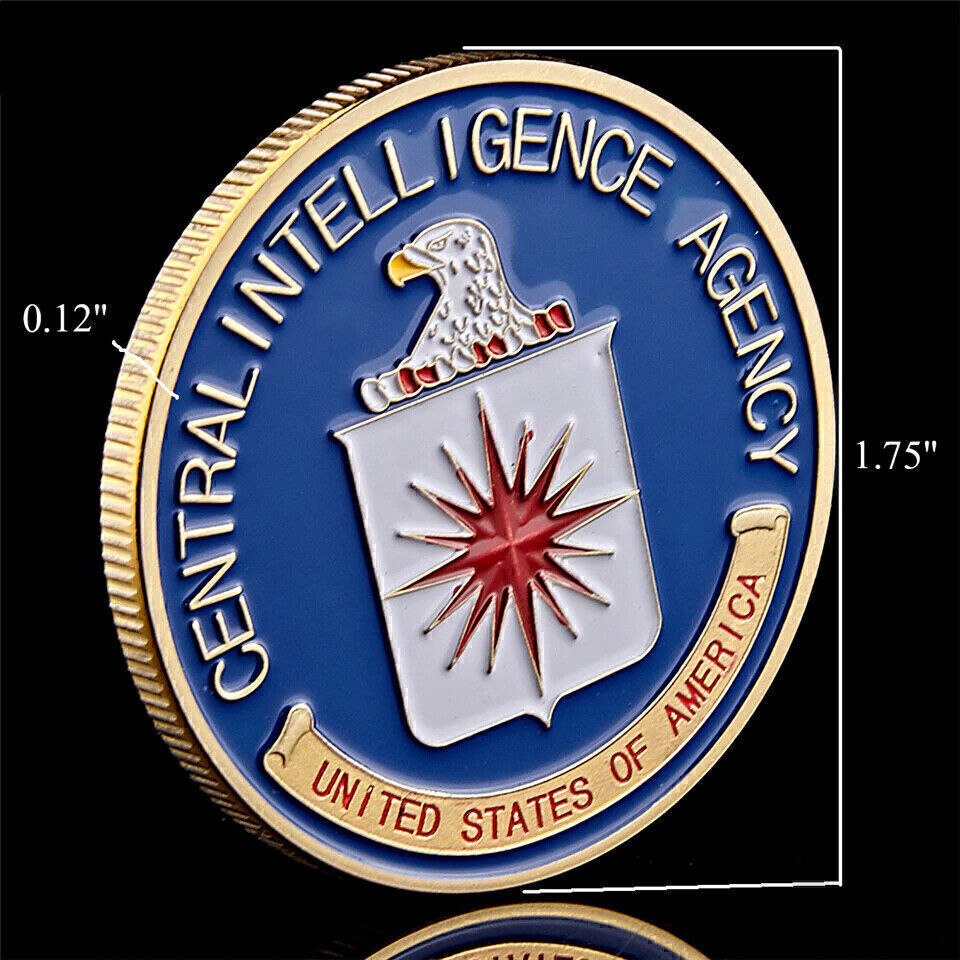 Detail: Material: Gold Plated Design: Coin Round, Double-sided Pattern Theme: Central Intelligence Agency Coin Size: 1.57“*0.12”/40mm* 3mm Product Usage: Home Office Decoration, Business And Holiday gifts, Commemorating Natural Crafts Collection Include: 1*Coin1*Plastic Case