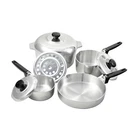 Return Policy Fast Delivery Trusted seller USA Heavy Duty 8-Piece Cast Aluminum Cajun Cookware Set, Silver Product Description Made of cast aluminum Set includes: 10" Fry pan W/Bakelite handle, 1. 0Qt sauce pan W/lid & Bakelite handle, 2. 0Qt sauce pan W/lid & Bakelite handle, 5. 0Qt stock pot W/lid & tray Heats quickly and evenly Bakelite handle and knob Mirror polished exterior Natural interior finish Bakelite handle Ideal for most kitchen tasks Shipping Returns Payment Shipping Shipping is FREE to all addresses other than APO/PO boxes in the lower 48 states. All our stock ships from US-based warehouses. Shipped via USPS or UPS (depending on location and package weight) Unless stated otherwise, all orders will ship within 24-72 hours of your payment being processed. Check our feedback to see the great reviews of FAST shipping we offer. Returns Seller does not accept returns Payment We currently accept payment via eBay managed payments only. Once payment is cleared, we will dispatch your shipment within 1-3 business days. Please refer to the "Shipping" tab for more information regarding shipping speed to your destination.