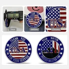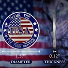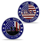 Item Details: Description: High-Quality Craftsmanship: Constructed from sturdy iron with a premium silver plating , this 40mm military appreciation challenge coin features intricate designs and a robust finish, ensuring long-lasting durability. Distinct Size & Detail: With a 40mm diameter and 3mm thickness , this coin is substantial and well-crafted, with textured serrated edges for added grip and a distinguished look. Meaningful Dual-Sided Design: Front Side: Displays a vibrant American flag with the words "Thank You USA For Your Service" in bold letters, a heartfelt tribute to the commitment and sacrifice of military personnel. Back Side: Features a silhouette of military figures saluting against the flag, encircled by the words "Your Nation Proudly Salutes You" —a powerful message of honor and respect for service members. Perfect Gift for Veterans and Military Members: This challenge coin is an ideal keepsake for veterans, active-duty members, or military families. It serves as a tangible symbol of appreciation and national pride, perfect for commemorative occasions, Memorial Day, or Veterans Day. Show your gratitude and patriotism with this "USA Military Challenge Coin"—a timeless piece that honors the courage and dedication of those who serve. Packing Each coin will be packed up individually with a plastic case suit in opp bag. Shipping We'll start shipping as soon as possible within 3 business day normally. Tracking will be available after several hours. Feedback We try to make sure ALL customers are satisfied with our services, if you do, a POSITIVE feedback is appreciated, thank you very much. And we always leaving a positive one for customer when item is delivered successfully. Contact Us Feel free to contact us at any time, we're happy to help. You can reach us by eBay or E-mail. Have a nice day!