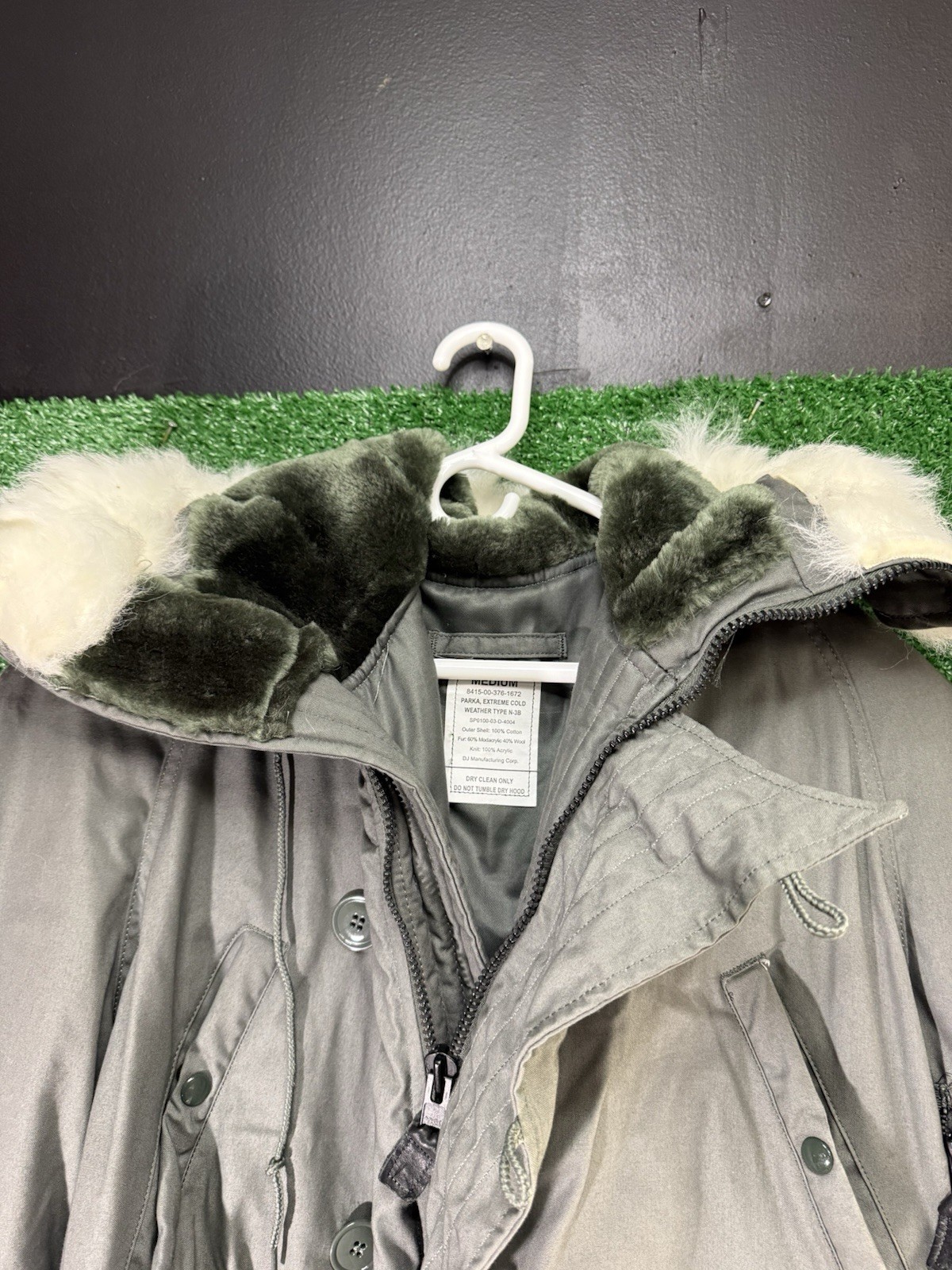 The USAF Vintage Heavy N-3B Extreme Cold Weather Parka, also known as the "Snorkel Parka," is an original piece from the United States military. This medium-sized parka is designed for extreme cold weather conditions, making it a valuable collectible for enthusiasts of militaria. Its original design and country of origin add to its historical significance and appeal to collectors interested in vintage military gear. All zippers and snaps work perfectly! This coat is in incredibly good condition for its age!