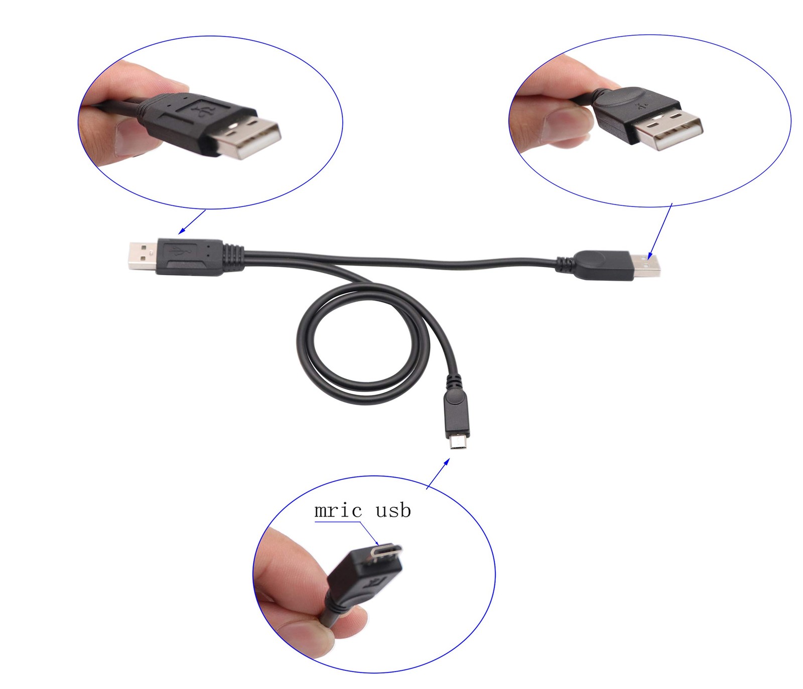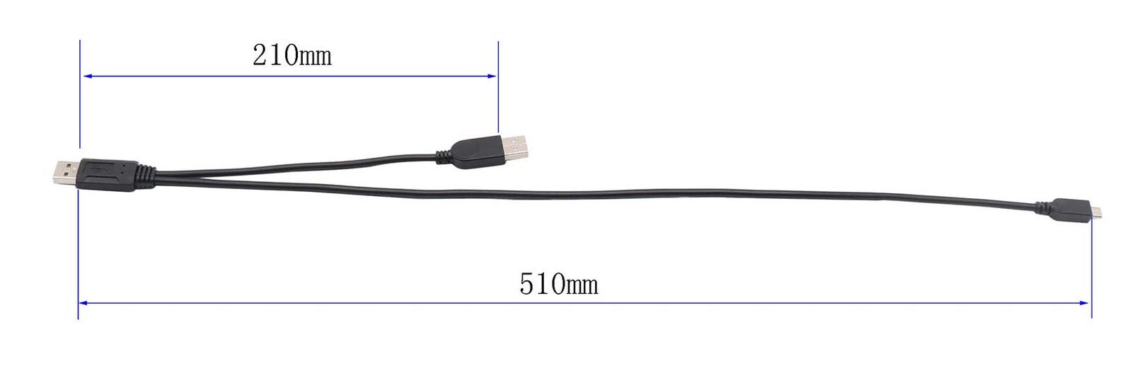 Feature: Connector: 2 USB A to 1 USB Micro B Y-Cable Port : USB 2.0 Gender: Male to Male Cable Length : 51cm Purpose: to increase the power output to the external device Especially valuable in situations where a single USB 2.0 port may not offer sufficient power to external hard drives, the USB A/Micro B Y-cable can be connected to 2 ports on 1 PC, to increase the power output to the external device. Aside from the additional power provided, this 1.7-foot cable also offers pure digital data transmission for high-speed file transfers. How to Use the Two Power USB Cable Especially valuable in situations where a single USB 2.0 port may not offer sufficient power to external hard drives, the USB A to Micro B Y-cable can be connected to 2 ports on 1 PC, to increase the power output to the external device. Aside from the additional power provided, this short micro cable also offers pure digital data transmission for high-speed file transfers. USB (M) to Micro-USB Type B (M) Package: 1x USB 2.0 "Y" with dual power supply (male A) to micro USB 5 Pin Extension Cord. Dual USB A to micro USB B male extension cord eliminates the need for a power adapter, provides both USB data and USB device power through a single cable. Dual power micro USB cable provides both power and data connections between a host computer (Desktop, laptop, netbook) and external USB hard drive or storage.Reduces clutter and frees up space. High Speed USB 2.0 Sygn and Power Enhancer: This Micro USB Splitter Cord support high speed data transfer up to 480Mbps, the exact power supply output is up to the requirement of the devices.This micro usb power adapter Y cable can solve issues as mico USB port unable to supply sufficient power, fixing problems with low-powered micro USB port. "The Micro USB cable is for use when device requires more than 1 USB port's power to operate. Package: 1x USB 2.0 "Y"with dual power supply (male A) to micro USB 5 Pin Extension Cord.