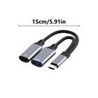 Features: Effortlessly connect your Type C devices to USB peripherals with this Type C to USB 3.0 Adapter, featuring a 30W PD charging port for simultaneous power and data transfer. This adapter boasts USB 3.1 Gen1 standard, ensuring up to 10 Gbps data transfer speed while maintaining backward compatibilities with USB 3.0 and 2.0. Ideal for individuals using devices and other USB C compatible gadgets search smooth connection . Perfect for on the go professionals needing to connect USB flash drives, keyboards, or mices to laptops and tablets during meetings, travel, or remote work setups. Crafted from aluminum, this Small 15cm OTG cable is designs to enhances device 's functionality without compromising on style or portability. Note: The Type C female interfaces supports only charging but not data transmission. Specifications: Material: aluminum Length: about 15cm/5.91inch Package Includes: 1xOTG Cable note: Please allow 1 to 3cm error due to manual measurement, please make sure you not mind before you bid, Due to the differences between different monitors, the picture may not reflect the actual colorful of the item.
