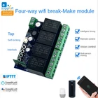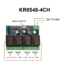 USB 5V DC7-48V für Wifi Switch Universal-Relaismodul 4CH Switch T6060 {LIS_PIC} Idiotisches WLAN-Steuermodul, keine Programmierung erforderlich, nur eine APP herunterladen, WLAN verbinden, um die integrierte Cloud zu steuern. Solange das Modul mit WLAN verbunden ist, kann das Handy überall im Land gesteuert werden. Arbeitsmodus: Dieses Produkt ist ein drahtloser Schalter, der momentane (Tippen) / selbstverriegelnde / verriegelte Arbeitsmodi unterstützt. Benutzer können das Gerät zur APP für hinzufügen, um angeschlossene Haushaltsgeräte oder Stromkreise fernzusteuern. Hinweis: Die Relais sind Schalter ohne Ausgang, der Stromversorgungseingang (AC/DC) nur für die PCBA. Tippen Sie manuell auf die Arbeitsmodus-Einstelltaste, das Produkt kann den Arbeitsmodus ändern. Im Tippmodus können Sie zwischen Verdrahtungsmethoden wählen: -1s einschalten und dann automatisch ausschalten -1s ausschalten und dann automatisch einschalten. Im Selbstsperrmodus können Sie angeschlossene Geräte aus der Ferne ein- und ausschalten. Im Interlock- (nur 2-Gang- und 4-Gang-Unterstützung) können Sie AC/DC-Motoren fernsteuern. Das Produkt ermöglicht die Fernsteuerung von Haushaltsgeräten über die mobile Anwendung für , die sowohl für Android als auch für iOS verfügbar ist. Funktionen des Moduls: 1.Standard-Jog-Funktion: Das Telefon wird zum Öffnen gedrückt, das Relais wird schnell geschlossen (das Standardintervall ist 1S) und es wird getrennt, und es hat auch die Funktion des Timing-Sharings 2. Drücken Sie die Selbstverriegelungs-Auswahltaste und das Statuslicht leuchtet. Zu diesem Zeitpunkt ist es selbstverriegelnd. Das Mobiltelefon drückt, um das Relais zu öffnen, um es einzuziehen, und drücken Sie, um das Relais zu schließen, um es zu trennen. Betriebsspannung: USB 5V/DC7-48V Micro-USB-Port-Stromversorgung ist bequemer Spannung der gesteuerten Geräte: DC7-48V Unterstützt die Steuerung verschiedener Spannungsbereiche Kontrollleuchte: mit Signalkontrollleuchte, Relai