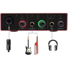 USB Audio Interface: high-performance converters enable allowing you to record, mix and play back audio in studio quality at up to 24-bit/ 192kHz, giving your recordings clarity and distinction. Guitar audio interface: support plug a guitar or bass its high headroom will let you record without distortion or clipping. Both of inputs have Gain Halo meters, which makes it easy to set input levels. XLR audio interface with phantom power Mic preamplifier inputs are on the front panel: Input 1 uses a standard 3-pin XLR socket, and can work with most types of microphones; you will need a male XLR connector on the end of your mic cable. Mic audio interface Both of inputs have Gain Halo meters, which makes it easy to set input levels. And also has balanced outputs, which means when you connect them to monitors or an amplifier with balanced inputs, your audio will be protected from any hum or interference. Computer recording audio interfaces supports free warranty. Compatible with MacOSX and Windows, build your songs and monitor your recordings with active speakers or headphones in real-time with zero-latency. Compatible with recording software: Cubase, Logic Pro, Reaper, Reason, Ableton Live, ProTools, FL Studio, Studio One, Audition. 48V fantasy power input jack: electronically balanced input via 3-pin XLR socket, which is compatible with most types of microphones. 6.35mm headphone output jack: monitoring of input signals to be directly. 2 x ¼” (6.35 mm) TRS jack sockets connect to powered studio monitors. Supported sample rates:44.1 kHz, 48 kHz, 88.2 kHz, 96 kHz.