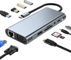 Description: 💻 【Manage All in One USB-C Hub】: The USB C Hub Adapter is compatible with all devices that contain Type-C / USB ports, especially MacBook Pro and Air. 11-in-1 USB C-HUB includes three USB3.0 and one USB2.0 ports, a PD port, a 4K HDMI video output, a VGA male-to-female port, an RJ45 Ethernet port and one Audio output, and SD / TF card reader slots, compatible with MacBook Pro / Air, Chromebook and other Type-C devices. 💻 【Super Fast Data Transfer】: USB 3.0 ports support transfer speeds up to 5Gbps, 2 USB 2.0 for 2.4G wireless mouse and keyboard without signal interference. SD/TF slot can access files in a few seconds. RJ45 100M Ethernet port provides more stable and faster internet access than most wireless connections.(Note: USB C Adapter It can't read SD/TF card at the same time.) 💻 【4K HDMI and VGA】: The USB C docking station supports high resolutions of up to 4K 3840 x 2160 @ 30 Hz and streams 4K or Full HD 1080p videos directly to HDTV, monitors or projectors and is downward compatible with 2K / 1080p / 720p resolutions. The VGA port supports up to 1080P @ 60HZ. 💻 【Dual-core Technology , PD Fast Charge】: USB C Hub multiport adapter is combined with the built-in dual-core chip, which has lower power consumption, all ports can work efficiently and the data transmission speed become faster. USB C Dongle Supports up to 100W fast charging. 💻 【Quality Guarantee & Sincere Service】: Our USB-C Docking station is strictly controlled and quality assured! Great compatibility, plug and play, no drivers required. If you encounter any product problems, you can contact us at any time via e-Mail and we will 100% solve the problem for you. Specif ication: Color: Silver Hardware Interface: USB, USB Type C, Ethernet, HDMI, USB 3.0 Special Feature: Play, Plug Compatible Devices: Projectors, Mouse, Keyboards, Monitors, Laptops, Card Readers Model: 11 in 1 HDMI: resolution up to 4K @ 30Hz USB 3.0: data transfer speed up to 5 Gbit / s RJ45 Ethernet: enjoy fast connection speeds of up to 100 Mbit / s SD card slot: speed up to 104 MB / s TF card slot: speed up to 104MB / s Compatible systems: Windows 10/8/7 / XP / Vista / Chrome OS / Mac OS / Linux / Android etc. Port: 3x USB3.0, 1x USB2.0 ports, 1x PD port, 1x 4K HDMI video output, 1x VGA male-to-female port, 1x RJ45 Ethernet port and 1x Audio output, and SD / TF card reader slots A. Why there is no video output? 1. Pls make sure your USB-C source devices support video output 2. PIs check the connection is good3.PIs use standard HDMI or VGA cable B.Why there is no audio output from HDMl port? 1. Pls make sure that there is audio output function on the monitor. 2. Pls set the external monitor as default audio output device. C.Does the function ofthe two USB-C ports are same?R:No,they are different.One is for charging and the other is for datatransmission. D. Sometimes WiFi stopped work while hard disk connected to hub.how to do?R: 2.4G network is easily disturbed. You can switch to 5G networkOr you can adjust the placement of the hard disk, move to suitableplace. E,Win10 system, if one of display does not display, how to doR: Right click desktop > Graphics Settings > Select One or MoreActive Displays F, lf speed is too slow when connect hard disk, how to do?R1: plug and pull out for more timesR2: Restart the computer and reconnect the hard disk G, lf display stopped after connect high current hard disk, how todo? H: Must be charged. Please supply power by power adapter. l Can USB3.0 charge a large current mobile phone?R: Yes, but product must be charged. Please supply power bypower adapter. R,Why TF/SD cannot be found and read?R1: Restart the computer and reconnectR2:For Mac OS,the card must be EFAT or FAT formatR3: Pls supply power by power adapter. J,Why there is no sound in 3.5mm or HDMI?R:Please set your voice output correctly. lf HDMI display isselected, HDMl and 3.5MM have sound output at the same time; ifVGA display is selected, only 3.5MM has sound and HDMI has nosound. Package: 1x 11 in 1 Hub Dongle
