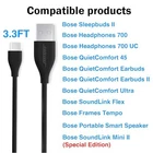 Color: Black; Length: 3.3ft; Package included: 1×USB C Bose Cable & 1×Power Adapter. This is the BOSE USB Tyoe-C Cable. Fit for Bose 700, 700ANC, QC45, Sport Earbuds, SleepBuds 2, Portable Smart Speaker, QuietComfort Earbuds, QuietComfort Earbuds II, New QuietComfort Ultra, SoundLink Flex, SoundLink Mini II(Special Edition). Provides 30 Days Money Back Guarantee, 12-month worry free to prove the importance we set on quality. Dear friends, if you are not sure what interface charging cable your bose uses, you can contact customer service to answer for you. Bose Headset/Speaker Charger Quickly charge Bose wireless Bluetooth devices without damaging the battery Compatibility Bose Noise Headphones 700; Bose 700ANC; Bose Portable Smart Speaker; Bose Sport Earbuds; Bose SleepBuds 2; Bose SoundLink Flex; Bose QuietComfort Earbuds; Bose QuietComfort Earbuds II; New Bose QuietComfort 45 Headphones; Bose Sport Earbuds; New Bose QuietComfort Ultra Headphones; New Bose QuietComfort Ultra Earbuds; ⚠️⚠️ ( NOT for Bose QuietComfort 35 QC35II, Bose SoundSport Headphones, Bose QuietComfort 35 QC35II QC25 QC20 SoundLink II Over-Ear Headphones.) Cable Length: 3.3Feet (39.3in / 1m) What You Get: 1 x USB Type C cable; 1 x 5v2a Power Adapter; And if there are any problems with products, contact our professional and responsible customer service!
