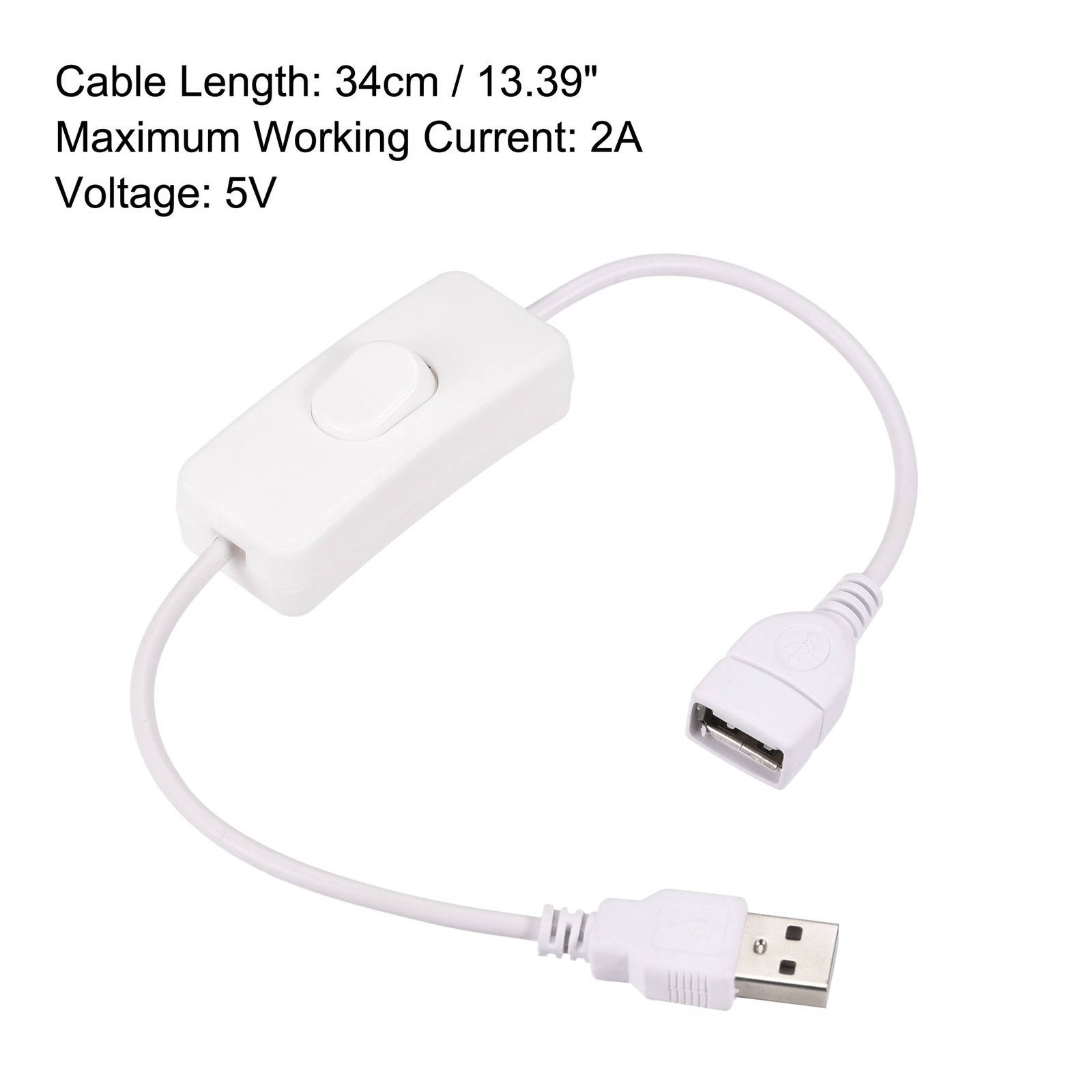 Document What is This?USB Male to Female Extension cable is widely used for LED Desk Lamp, LED Strip, USB Fan and other low-power electrical devices.What will I get?Material: Plastic, Copper WireColor: WhiteConnect Type: USB Male to FemaleCord Type: 24AWGCable Length: 34cm / 13.39"Voltage: 5VMaximum Working Current: 2APackage Content: 1 x USB Cable with SwitchIs there any advantages of the product?No need to pull the USB cable to restart your device, just press the switch button to turn it on and off.What should I notice?This cable is only for power supply, not for data transfer use. USB Cable with ON/Off Switch USB Male to Female Extension Cord 34cm White New What is This? USB Male to Female Extension cable is widely used for LED Desk Lamp, LED Strip, USB Fan and other low-power electrical devices. What will I get? Material: Plastic, Copper Wire Color: White Connect Type: USB Male to Female Cord Type: 24AWG Cable Length: 34cm / 13.39" Voltage: 5V Maximum Working Current: 2A Package Content: 1 x USB Cable with Switch Is there any advantages of the product? No need to pull the USB cable to restart your device, just press the switch button to turn it on and off. What should I notice? This cable is only for power supply, not for data transfer use. Hot Item Payment 1.We accept eBay payment . 2.Payment must be received within 7 business days of auction closing. Shipping 1.We ship to your eBay or Paypal address. Please make sure your eBay and Paypal address is correct before you pay. 2.Items will be shipped within 1-3 business day when we received payment. 3.Delivery time depends on destination and other factors. Description Policy USB Cable with ON/Off Switch USB Male to Female Extension Cord 34cm White New What is This? USB Male to Female Extension cable is widely used for LED Desk Lamp, LED Strip, USB Fan and other low-power electrical devices. What will I get? Material: Plastic, Copper Wire Color: White Connect Type: USB Male to Female Cord Type: 24AWG Cable Length: 34cm / 13.39" Voltage: 5V Maximum Working Current: 2A Package Content: 1 x USB Cable with Switch Is there any advantages of the product? No need to pull the USB cable to restart your device, just press the switch button to turn it on and off. What should I notice? This cable is only for power supply, not for data transfer use. Hot Item Payment 1.We accept eBay payment . 2.Payment must be received within 7 business days of auction closing. Shipping 1.We ship to your eBay or Paypal address. Please make sure your eBay and Paypal address is correct before you pay. 2.Items will be shipped within 1-3 business day when we received payment. 3.Delivery time depends on destination and other factors.