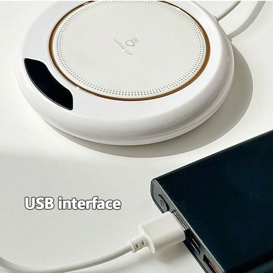 Key Features Smart 3-Level Temperature Control Adjustable heating levels: 55°C / 65°C / 75°C Default setting starts at 55°C Each button press increases temperature by 10°C Press again after max level to power off Efficient & Safe Heating 20W rated power for stable warmth Keeps beverages warm without overheating Approximate drink temperature results: 55°C plate ≈ 40°C drink 65°C plate ≈ 45°C drink 75°C plate ≈ 50°C drink Actual temperature may vary by cup material and environment USB Powered – Use Anywhere Powered by USB or other DC power sources Compatible with laptops, power banks, wall adapters, and car chargers Recommended power output: 2A or higher for best performance LED Temperature Display Digital display shows selected temperature clearly Flickering display indicates insufficient power supply Low-current chargers may cause slower heating Simple One-Button Operation Easy on/off and temperature adjustment Ideal for office, home, or study desk use Product Specifications Product Name: Thermostatic Heating Cup Mat Material: ABS + electronic components Color: White Product Diameter: 12cm Heating Plate Diameter: 8.8cm Thickness: Approx. 2.5cm Rated Power: 20W Input: 2A Power Supply: USB / DC Cable Length: 0.9m Ideal For Coffee, tea, milk, hot cocoa Office desks, home offices, dorm rooms Flat-bottom ceramic, glass, or metal mugs Daily use or practical gift giving