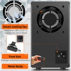 1. Color LED screen, 4-digit display, with power display. 2. Double knob encoder for precise adjustment. 3. Output light button, output current and voltage with one button to protect the safety of electrical appliances. 4. USB 5V 2A output port, can charge mobile phones. 5. Intelligent cooling fan, when the operating temperature is higher than 50°C, the cooling fan automatically turns on. Input voltage:AC 110V 60HZ Output voltage:0 ~ 30V Output current:0 ~ 10A Voltage resolution:10mV Current resolution:1mA Output Voltage ranges from 0 to rating voltage with continuous adjustment . Voltage regulation : Line regulation<5mV. Load regulation<5mV. Recovery time<500us(50% Load change, minimum load 0.5A) Ripple & Noise<5m Vrms, 100m Vp-p Temperature coefficient<100p pm/C. Output current ranges from 0 to rating current with continuous adjustment Current regulation line regulation<3mA. load regulation<3mA. Indicator Meter Voltage display precision: +-(0.5% of rdg + 2 digits). Current display precision: +-(0.5% of rdg + 2 digits). Operation Temperature & Humidity : 0 ~ 40 C, RH<80%. Storage Temperature & Humidity : -10 ~ 70 C, RH<70%.
