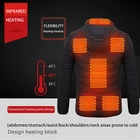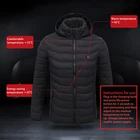 Specifications: Name: Heating down jacket Conditions: brand new Color: black, blue, red Gender: male Material: 95% cotton+5% spandex, carbon fiber yarn Heating temperature: red LED 45-55 ℃, white 35-45 ℃, blue LED 25-35 ℃ Power supply: USB power pack (not included, 10000mah power pack can heat for about 5-7 hours) Size: S, M, L, XL, 2XL, 3XL, 4XL, 5XL, 6XL Season: autumn, winter Package includes: 1 heating down jacket (Note: excluding power bank)