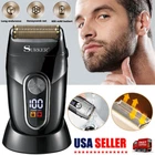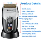 Specifications: Best for hair, beard, stubble, shaved head bump free shaving and super close shaving clean up hair and neck lines for smooth finish cord/cordless shaver shaper a great tool for an extra-close shave on the neck,face and all around the hairline 100-240V voltage,50/60Hz Cord/cordless work powerful and quiet rotary motor gold titanium hypoallergenic foil for irritation-free shaving 2 blade cutting shaving system 600mAh Lithium-ion battery LCD display, charging reminder, battery power percentage reminder contains travel lock function, press and hold the switch for 3 seconds, the machine will be locked, if unlocked, do the same operation USB Line charger model Package Included: 1* T rimmer 1* Protective cover 1* C harger 1* Cleaning brush 1* Manual INSTRUCTIONS FOR USE : 1. Men whose skin is sensitive or easily irritated by shaving, or who suffer from a skin allergy, should test one section on the leg or arm before using the shaver. 2. Remove the protective cover and turn on the unit to start shaving. Hold the shaver at a right angle to the area of your face that you want to shave and run the single shaving foil carefully along your skin. Tip: In general, we recommend that you shave against the direction of hair growth, as this is the best way to trim the hair. Pull your skin tight, with your fingers in inaccessible areas, to achieve optimum results. 3. Do not push the shaver on the skin too hard as it could cause irritation, make the shaver warm and prevent a perfect shave. 4. Please note that it takes 2 to 4 weeks for your skin to adapt to a shaver, so please do not change shaving instruments in this period of time. 5. If hair is longer than 1/32” begin by cutting the hair down first with a trimmer, then use shaver for a smooth close finish.