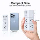 abcd 【9 IN 1 Function Outlet Extender】- 6 AC multi plug outlet(3 side, 15A/125V/1875W) with built-in 900 Joules surge protector and 3 USB charging ports (1 USB C, total output DC 5V/3.4A), 180 degree rotating AC plug. 【 Rotating AC plug & Wide Space】 - Save space with unique 3D design Swivel power strip, 6 AC outlets with wide space in between, separated enough to fit big plugs without blocking each other. The swivel power strip can turn left and right 90 degrees conveniently, compact design (5.20*2.03*1.90inch) and easy to carry, use anywhere needed. 【 Smart Charge with USB A & USB C 】- 4 USB ports total 3.4 A, each USB A port features 5V/2.4A Max output. USB C charging port features 5V/3A MAX. Built in smart technology, detecting charging devices and deliver optimal charging speed automatically, compatible with Kindle and most USB devices. NOTE: The UCB-C port is not Quick Charger 3.0, doesn't support any other devices which need 9~22V charging voltage. 【Surge Protector Outlet】- The multi plug outlet provide surge protector against electrical spikes. Three complementary Surge Protection Circuits, TVS(transient voltage suppressor) MOV(metal oxide varistor) GDT(gas discharge tube), with response speed less than 1Ns, and minimum energy-absorbing capacity of 900 Joules, its response time is much shorter than the traditional MOV surge protector circuit. 【 Our After Sale Service 】- ETL Certified,Our friendly and reliable customer service will respond to you within 24 hours. You can purchase with confidence, with our 30-day return and 12-month replacement .