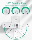 USB Outlet Extender Surge Protector - with Rotating Plug, 6 AC Multi Plug and 3 USB Ports (1 C), 1800 Joules, 3-Sided Swivel Power Strip Spaced Splitter for Home, Office, Travel Product Details Brand: Mifaso Color: White Total Power Outlets: 7 Voltage: 125 Volts Special Feature: Surge Protection 【9 IN 1 Function USB Wall Outlet】- 6 AC outlet splitter (3 side, 15A/125V/1875W) with built-in 1800 Joules surge protector and 3 USB charging ports (1 USB C, total output DC 5V/3.1A), 180 degree rotating AC plug. The grounded indicator light that assures your devices are secure. 【USB- C Smart Charging Ports】- With built-in smart IC technology, high-speed USB ports automatically detect charging devices and deliver optimal charging speed, USB A up to 2.4A/5V per port, USB C up to 3A/5V max, are compatible with most USB devices. 【1800J Surge Protector Outlet】- The multiple plug outlet provide surge protector electrical spikes. 3 complementary Surge Protection Circuits, TVS(transient voltage suppressor) MOV(metal oxide varistor) GDT(gas discharge tube), with response speed less than 1Ns, and minimum energy-absorbing capacity of 1800 Joules, much more quickly and reliably than the traditional MOV surge protector circuit. 【Wide Space & Rotating AC plug】 - Unique 3-Side space-saving design power strip, 6 AC outlets with wide space in between, are separated enough to fit big plugs without blocking each other. The swivel power strip can turn left and right 90 degrees conveniently, compact design (5.7*1.9*1.7 Inch) and easy to carry, use anywhere needed.