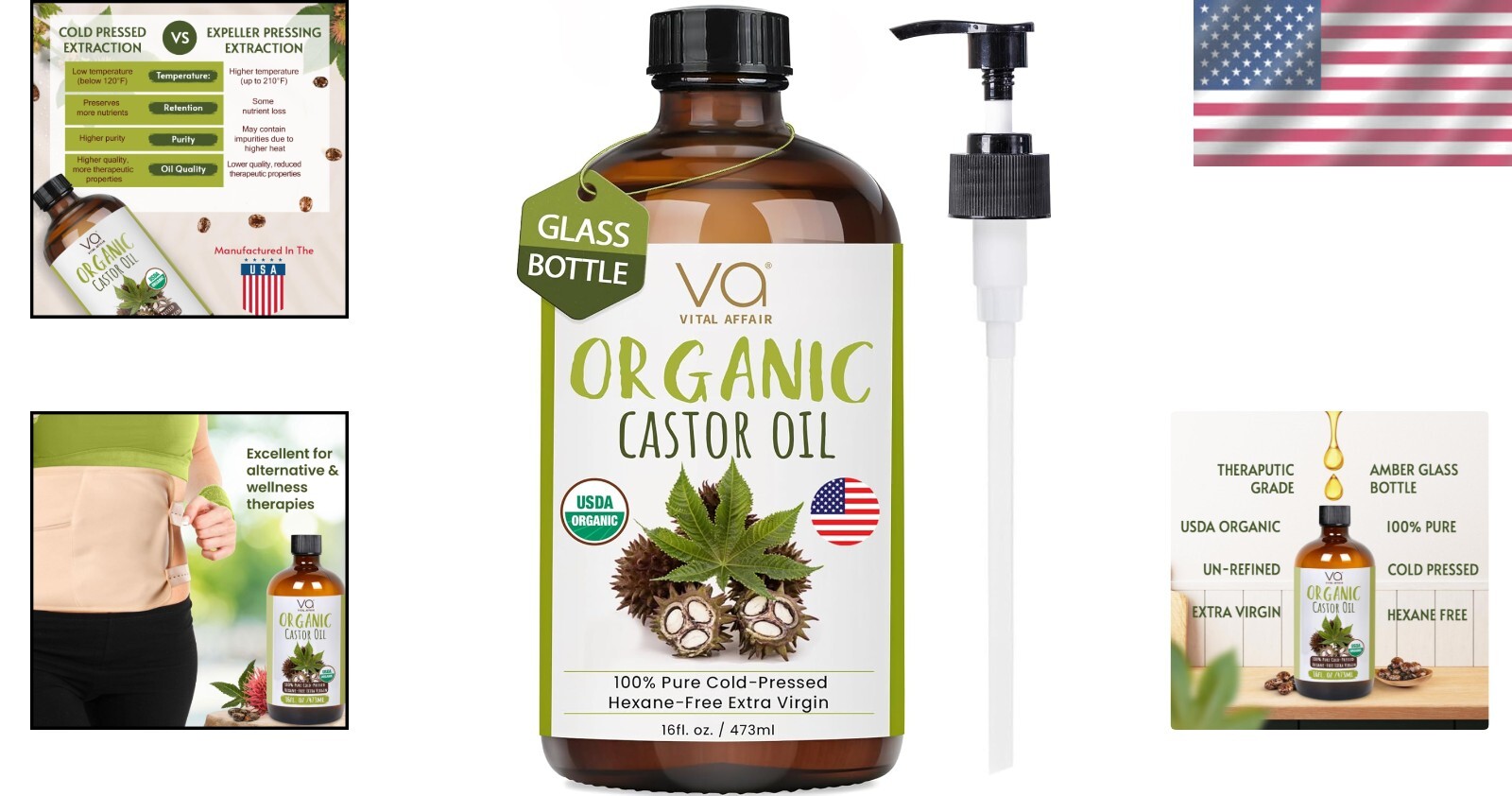 USDA Certified Organic Cold Pressed Castor Oil - 16oz Multi-Use Glass Bottle < class="slides"> ‹ › ‹ › ‹ › ‹ › ‹ › ‹ › ‹ › ‹ › ‹ › ‹ › ‹ › USDA Certified Organic Cold Pressed Castor Oil - 16oz Multi-Use Glass Bottle Why Choose Our Organic Castor Oil? USDA Certified: Our castor oil is USDA certified organic and hexane-free, ensuring that you’re using a product that’s as pure as nature intended. Cold Pressed & Packaged in Glass: We believe in maintaining the integrity of our oil. Our cold-pressed castor oil is stored in a glass bottle to preserve its purity and effectiveness. Convenient Pump Dispenser: Each 16 oz bottle comes with a convenient pump for mess-free dispensing, allowing you to use every drop without creating a mess. Unlock the Benefits: Hydrating Skin: Our organic castor oil acts as a powerful moisturizer for your face, promoting hydration and a radiant complexion. Promotes Hair Growth: Enhance your hair care routine with our 100% pure castor oil, known for its potential to boost hair growth and thickness. Enhances Natural Beauty: Whether it’s for your eyelashes, eyebrows, or nails, our castor oil is a natural way to improve and amplify your beauty. Works Best with Organic Castor Oil Pack: Our organic cold pressed castor oil works exceptionally well with castor oil packs, helping to enhance circulation, reduce inflammation, and alleviate discomfort by fostering detoxification and muscle tension relief. Customer Satisfaction Guaranteed: We take pride in our product quality and customer satisfaction. Our castor oil comes beautifully packaged to ensure it reaches you safely. If for any reason you are not completely satisfied, please contact us for a prompt resolution. Your Vital Self-Care Companion: Indulge in the enriching experience of our USDA certified organic cold pressed castor oil. Include it in your self-care routine to hydrate, nourish, and enhance your natural beauty. Order your 16oz glass bottle today and embrace a journey of holistic wellness! Shipping Free & Fast Shipping - We offer free shipping to most of the USA with a normal delivery time of 3-7 days. However, due to the current situation, additional delivery time (up to 3 weeks) may be required for some items. Alternative Carriers - We may use alternative carriers (e.g. USPS, FedEx, UPS, etc.) to ensure your package arrives safely and on time. Due to the use of multiple carriers, we are unable to provide a tracking number automatically. Handling Time - Orders are processed and shipped within 1-2 business days of receiving cleared payment. Shipping Restrictions - Shipping to Alaska, Hawaii, Puerto Rico, Guam, and other US territories may incur shipping charges or delivery restrictions. Please contact us before ordering, or your order can be refunded/cancelled. State Restrictions - There may be restrictions based on your state of purchase. For example, certain items may not be shipped to California due to state regulations. Contact for Tracking Updates - If you require tracking updates or have any concerns about the delivery of your order, please feel free to contact us, and we will be happy to assist you. Return 30-Day Hassle-Free Returns - We want you to be completely satisfied with your purchase. If you are not, you can return the item within 30 days of receiving it for a full refund or exchange. Easy Return Process - To start a return, simply contact us and we will provide you with a prepaid return shipping label and detailed instructions. Restocking Fee - There are no restocking fees for returns. However, the buyer is responsible for return shipping costs if the return is not due to a seller's error. Refund Processing Time - Refunds will be processed within 5 business days of receiving the returned item in its condition. Payment We accept all major credit cards, PayPal, and Apple Pay for your convenience. Your payment information is secure and encrypted to ensure a safe and seamless transaction. Please complete your payment within 3 days of purchase to avoid any delays in shipping. Feedback Your feedback is extremely important to us. We strive to provide the best products and customer service possible. If you are satisfied with your purchase, please take a moment to leave us a positive review. If you have any concerns or issues with your order, please contact us before leaving negative feedback. We are committed to resolving any problems and ensuring your satisfaction. Contact Us If you have any questions or concerns, please feel free to out to our customer support team. You can contact us through the eBay messaging system. We are available Monday to Friday, 9:00 am to 5:00 pm EST, and we will do our best to respond to your inquiry within 24 hours. Buy it now and enjoy a pleasant shopping experience! Unit Quantity: 1 Hair Type: All Hair Types Ingredients: Castor Oil Features: Alcohol Free,Cruelty-Free/No Animal Testing,Organic,Hexane Free,BPA Free Styling Effect: Hair Growth,Moisturizing Active Ingredients: Organic Castor Oil Formulation: Liquid Department: Unisex Scent: Natural Castor Oil Scent Type: Hair Oil Size: Standard Size Volume: 16 fl oz Unit Type: fl oz