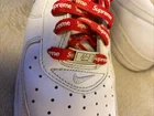 The basic 2020 Supreme X Air Force 1 Low Nike shoes in classic white. These come with no box and need cleaned. They are in good shape but I do not have the skills to clean shoes. As is.
