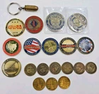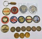 USMC Challenge Coins Heritage Foundation American Legion Veterans Toys For Tots misc. Lot of Included is 1 bullet keychain. In good, Used condition. Please see all pictures for item details. INVB05