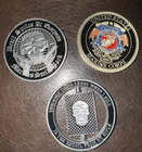 For sale is a set of three USMC Marine Corps challenge coins at an unbeatable price. These coins are a must-have for any collector or enthusiast of military memorabilia. The coins feature intricate designs and are made with high-quality materials to ensure their longevity. The set includes three coins, each with its own unique design and all of them are original. These coins are perfect for display or as a gift for a loved one. Whether you're a history buff or just appreciate the bravery and sacrifice of our military, this set of coins is a great addition to any collection.