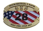 USN NCCM Micheal T.Davis 28 July 1989-July 2017 Challenge Coin Features: Measures Approximately: 2.5 x 3 Edging: No Special Edging Shape: Oval Challenge Coin Front: Mentor Leader Motivator Shipmate Friend Reverse: NCCM Michael T Davis 28 USN July 1989 July 2017
