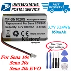 Ship to US via USPS First class Product Description: Repla cement Battery Model : SN10S20S Battery Capacity : 3.7V 850mAh 3.14Wh Compatable with : For Sena 10S Motorcycle Bluetooth Helmet Headset For S ena 20S EVO Bluetooth Headset 20S-EVO-01 Package include: 1 * 850mAh Battery