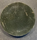 2 inches in diameter and 1/16" thick with rounded edge on the front. Scuffs and light scratches present.