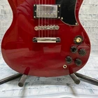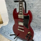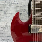 This is a professional-level SG electric guitar in metallic red with a solid mahogany body and mahogany neck. It has 22 frets on a rosewood fretboard, featuring chrome hardware. The set includes a cable, and it is a 6-string right-handed electric guitar from the 2024 Custom series, made in China.