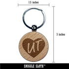 UT Utah State in Heart Engraved Wood Round Keychain Tag Charm