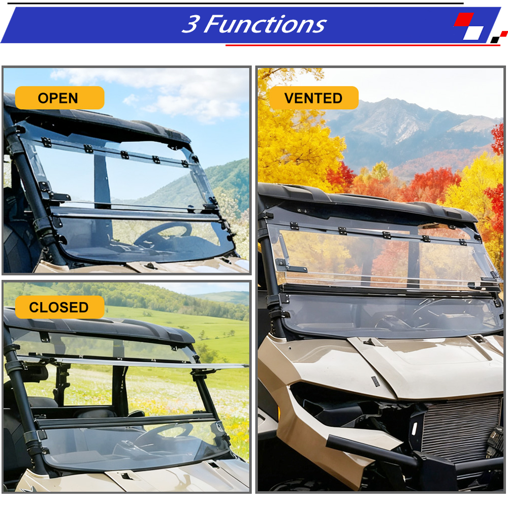 UTV Front 3-IN-1 Flip Windshield Fit for Polaris Ranger XP 1000/Crew 2017-2026 Fit : - Compatible with Ranger 1000/ Crew 1000 2020-2026 -Compatible with Ranger XP 1000/ Crew XP 1000 2017-2026 -Compatible with Ranger Diesel 2015-2023(Fit Grab bar and Center Console) Please contact the seller before purchasing if you are not sure the fitment. Description : - Type:Aftermarket windshield -Color:Clear -Materia l: Hard Coat PC -Features: 3-IN-1 Flip up You will get: -1set front 3-in-1 flip windshield Shipping: •Item located in the US, shipped via FedEx or UPS. •Transportation time: 3-9 days. •Local pickups and combined shipping options are not provided. Returns: •Please do remember to email us in advance when you want to return it back and please let me know the reasons(if there is a picture could be even better). •You can return a product for up to 30 days from the date you purchased it. •We'll be happy to make an exchange. •Any situations, please contact us firstly, we belive that good communications will solve the problem.