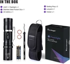 UV Flashlight Black Light Flashlight Mini UVA-T1 Max 3000mW High Power for Pet Urine Detection, Rocks, Minerals Glowing and UV Resin Glue Curing Product Details Color: UVA-T1 Brand: TactEagle MPN: UVA-T1 UPC: 749640330534 EAN: 0749640330534 Special Feature: Portable, Lightweight, High Power, Stain Detector, Durable Color: UVA-T1 Power Source: Corded-Electric, Battery Powered Light Source Type: LED Material: Aluminum, Resin Is Discontinued By Manufacturer : No Product Dimensions : 4.05 x 0.87 x 0.87 inches; 7.05 ounces Item model number : UVA-T1 Batteries : 1 AA batteries required. (included) Date First Available : February 12, 2021 Manufacturer : TactEagle Customer Reviews: 4.5 4.5 out of 5 stars 348 ratings Special Feature: Portable, Lightweight, High Power, Stain Detector, Durable Color: UVA-T1 Power Source: Corded-Electric, Battery Powered Light Source Type: LED Material: Aluminum, Resin Included Components: Battery Voltage: 1.5 Volts Battery Cell Composition: Alkaline Number of Batteries: 1 AA batteries required. (included) Water Resistance Level: Waterproof Brand: TactEagle Brightness: 300 lumen Battery Description: Alkaline Runtime: 2 hours Style: Compact Finish Type: Resin Light Source Wattage: 3 Watts Mounting Type: Handheld Recommended Uses For Product: UV resin glue curing, rocks and minerals observation, pet urine stain detection, low-light inspection Manufacturer: TactEagle UPC: 749640330534 Part Number: UVA-T1 Item Weight: 7 ounces Product Dimensions: 4.05 x 0.87 x 0.87 inches Item model number: UVA-T1 Batteries: 1 AA batteries required. (included) Is Discontinued By Manufacturer: No Assembled Height: 0.87 inches Assembled Length: 4.05 inches Assembled Width: 0.87 inches Shape: Compact Finish types: Resin Number of Lights: 1 Special Features: Portable, Lightweight, High Power, Stain Detector, Durable Batteries Included?: Yes Batteries Required?: Yes Wattage: 3 Watts Bulb Features: High Intensity, Pure Beam, Focused Light Date First Available: February 12, 2021 High-Intensity 365nm Black Light FlashlightThe Tacteagle UVA-T1 features a powerful 365nm UV Flashlight with high intensity and radiant energy, making it ideal for detecting pet stains, scorpions, and other hidden traces. The black filter optical lens ensures pure UV light, providing a narrow and focused beam for precise detection. Durable and Portable DesignCrafted from high-strength aerospace aluminum alloy, the black light is both lightweight and sturdy. Its hard-anodized surface finish is resistant to scratches and corrosion, making it durable even in harsh environments. Plus, its compact and easy to carry, perfect for on-the-go use. Long Runtime and Energy EfficiencyPowered by a single AA alkaline battery, the uv light offers over 2 hours of runtime. It incorporates a smart MCU chip circuit for digital regulated current, ensuring constant brightness and energy efficiency. This blacklight flashlight is designed for long-lasting performance with minimal energy use. Impact and Waterproof ResistanceBuilt to withstand tough conditions, the UVA-T1 can endure a 5-foot drop impact and is IPX-8 waterproof, meaning it can be submerged in water up to 6.5 feet for 30 minutes without any damage. Its designed to handle rugged environments, making it reliable for both indoor and outdoor use. Versatile ApplicationsThe black light is not just for pet urine detection! Its perfect for a range of tasks including rock and mineral hunting, jewelry appraisal, UV glue curing, leak detection, and even counterfeit detection. Whether youre a hobbyist or a professional, this flashlight is a versatile tool for many applications.