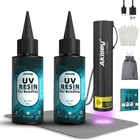 【UV Resin Kit With Light】 - Akisey UV resin for bonding has low viscosity and strong adhesive. Under the irradiation of 395nm UV flashlight, the UV resin can fast cured in just 5-10s. Meanwhile comes with 7.8x7.8in Silicone Mat, A pair protective gloves, A storage bag, what we offered is for your better bonding experience 【100g Strong UV Resin】 - The bonding UV resin keeps liquid state before curing with UV flashlight, which is convenient for you to adjust and shape. After curing, it is odorless, high transparency , no yellowing and hard. Akisey will provide perfect glue for your artistic creation and helpful in the daily life. 【Powerful UV 395nm Flashlight】 - The flashlight provides 1300mw and 395nm wavelength with upgraded lamp beads, which make the light reaction is more efficient, and dedicated to surface curing. The flashlight is powered by built-in 400mAh battery and with the measures of 3.2x0.8in, it is small enough to be carried to anywhere. (Tips - Do not look at the UV light directly while using) 【Multi-Purpose】- Our UV resin kit with light is designed for bonding small ornaments with transparent objects such as resin, acrylic, glass, etc., and also be used for welding between glass, metal and plastic. For better curing, we strongly recommend one of the two objects should be transparent at least. 【180-Day-Warranty!】 - Any question about the UV resin kit will be solved if you contact us on AMZ. Akisey official offers excellent customer support and will be responsible for your dissatisfaction (include free replacement/refund). Product Description The video showcases the product in use. The video guides you through product setup. The video compares multiple products. The video shows the product being unpacked. uv resin kit with light Merchant Video Akisey Meet Your Needs Add to Cart Add to Cart Add to Cart Add to Cart Add to Cart Customer Reviews 4.6 out of 5 stars 54 4.8 out of 5 stars 8 4.2 out of 5 stars 74 4.4 out of 5 stars 664 4.2 out of 5 stars 31 4.4 out of 5 stars 664 Price $32.99 $ 32 . 99 $17.09 $ 17 . 09 $28.99 $ 28 . 99 $18.99 $ 18 . 99 $6.99 $ 6 . 99 $22.99 $ 22 . 99 Function Resin Curing & Jewelry Making For Jewelry making Epoxy Resin, Paint Mixing Resin Curing & Jewelry Making Ring Size Ajuster Curing Epoxy Resin Molds Operation Design for Beginners For Jewelry Making 5 Speed & Electric Lifting Double-Sided Curing Meanwhile Fast Curing Timer options Color White Black & White White White Pink Black Brand Akisey Akisey Akisey Akisey Akisey Akisey Warrranty ✔ ✔ ✔ ✔ ✔ ✔