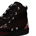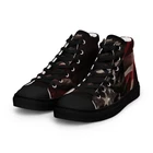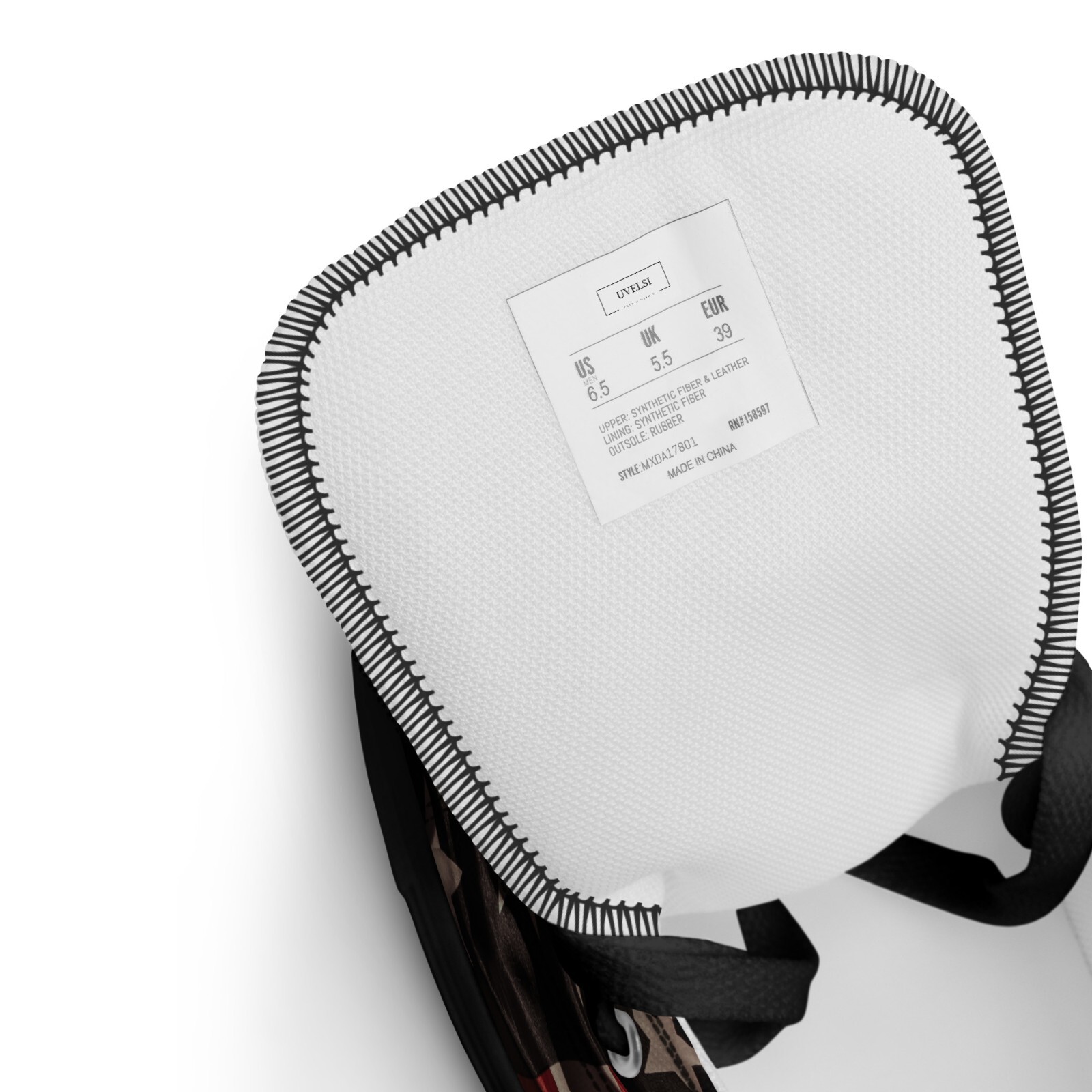 The UVelsi P 001 High Top sneakers for men feature a lace-up closure and a high-top shoe shaft style. These modern and comfortable shoes are perfect for activities like basketball, running, and gym training. Made with a black canvas upper and a rubber outsole, they offer cushioning and lightweight performance. These limited edition sneakers are designed for casual and activewear occasions, with a touch of American and urban style. Step up your shoe game with the High Top Canvas Shoes. These handmade, trendy shoes are sure to spice up your outfit. Get yours now! • 100% polyester, canvas upper side • Ethylene-vinyl acetate (EVA) rubber outsole • Breathable lining, soft insole • Faux leather toe cap • Padded collar, lace-up front • Soles and laces in matching colors Size guide preview (Imperial) US Men UK Europe Foot Length Japan Outsole Length 5 5 4 37.5 9 ⅛ 23 10 ¼ 6 6 5 38.5 9 ½ 24 10 ⅝ 7 7 6 40 9 ¾ 25 10 ¾ 8 8 7 41 10 ⅛ 26 11 ⅛ 9 9 8 42.5 10 ½ 27 11 ⅝ 10 10 9 44 10 ¾ 28 12.00 11 11 10 45 11 ¼ 29 12 ⅛ 12 12 11 46.5 11 ¾ 30 12 ¾ 13 13 12 47.5 12 31 12 ¾ 5.5 5.5 4.5 38 9 ¼ 23.5 10 ¼ 6.5 6.5 5.5 39 9 ⅝ 24.5 10 ⅝ 7.5 7.5 6.5 40.5 10.00 25.5 11 ⅛ 8.5 8.5 7.5 42 10 ¼ 26.5 11 ⅜ 9.5 9.5 8.5 43 10 ⅝ 27.5 11 ⅝ 10.5 10.5 9.5 44.5 11.00 28.5 12 ⅛ 11.5 11.5 10.5 46 11 ½ 29.5 12 ½ 12.5 12.5 11.5 47 11 ⅞ 30.5 12 ¾ Size guide preview (Metric) US Men UK Europe Foot Length Japan Outsole Length 5 5 4 37.5 23.2 23 26.2 6 6 5 38.5 24.1 24 27 7 7 6 40 24.8 25 27.3 8 8 7 41 25.7 26 28.3 9 9 8 42.5 26.7 27 29.5 10 10 9 44 27.3 28 30.5 11 11 10 45 28.6 29 30.8 12 12 11 46.5 29.9 30 32.4 13 13 12 47.5 30.6 31 32.4 5.5 5.5 4.5 38 23.5 23.5 26.2 6.5 6.5 5.5 39 24.5 24.5 27 7.5 7.5 6.5 40.5 25.4 25.5 28.3 8.5 8.5 7.5 42 26 26.5 29 9.5 9.5 8.5 43 27 27.5 29.5 10.5 10.5 9.5 44.5 28 28.5 30.8 11.5 11.5 10.5 46 29.2 29.5 31.8 12.5 12.5 11.5 47 30.2 30.5 32.4