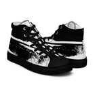 These are UVelsi Forest Version High Top shoes for men, part of the Premium Edition collection. These lace-up sneakers are designed with a classic vibe, featuring a black color with a solid pattern. Made with rubber outsoles and canvas lining, they offer comfort and performance, suitable for activities like basketball, running, and gym training. This limited edition model is handmade and customized, perfect for casual or workwear occasions in all seasons. Step up your shoe game with the High Top Canvas Shoes. These handmade, trendy shoes are sure to spice up your outfit. Get yours now! • 100% polyester, canvas upper side • Ethylene-vinyl acetate (EVA) rubber outsole • Breathable lining, soft insole • Faux leather toe cap • Padded collar, lace-up front • Soles and laces in matching colors Size guide preview (Imperial) US Men UK Europe Foot Length Japan Outsole Length 5 5 4 37.5 9 ⅛ 23 10 ¼ 6 6 5 38.5 9 ½ 24 10 ⅝ 7 7 6 40 9 ¾ 25 10 ¾ 8 8 7 41 10 ⅛ 26 11 ⅛ 9 9 8 42.5 10 ½ 27 11 ⅝ 10 10 9 44 10 ¾ 28 12.00 11 11 10 45 11 ¼ 29 12 ⅛ 12 12 11 46.5 11 ¾ 30 12 ¾ 13 13 12 47.5 12 31 12 ¾ 5.5 5.5 4.5 38 9 ¼ 23.5 10 ¼ 6.5 6.5 5.5 39 9 ⅝ 24.5 10 ⅝ 7.5 7.5 6.5 40.5 10.00 25.5 11 ⅛ 8.5 8.5 7.5 42 10 ¼ 26.5 11 ⅜ 9.5 9.5 8.5 43 10 ⅝ 27.5 11 ⅝ 10.5 10.5 9.5 44.5 11.00 28.5 12 ⅛ 11.5 11.5 10.5 46 11 ½ 29.5 12 ½ 12.5 12.5 11.5 47 11 ⅞ 30.5 12 ¾ Size guide preview (Metric) US Men UK Europe Foot Length Japan Outsole Length 5 5 4 37.5 23.2 23 26.2 6 6 5 38.5 24.1 24 27 7 7 6 40 24.8 25 27.3 8 8 7 41 25.7 26 28.3 9 9 8 42.5 26.7 27 29.5 10 10 9 44 27.3 28 30.5 11 11 10 45 28.6 29 30.8 12 12 11 46.5 29.9 30 32.4 13 13 12 47.5 30.6 31 32.4 5.5 5.5 4.5 38 23.5 23.5 26.2 6.5 6.5 5.5 39 24.5 24.5 27 7.5 7.5 6.5 40.5 25.4 25.5 28.3 8.5 8.5 7.5 42 26 26.5 29 9.5 9.5 8.5 43 27 27.5 29.5 10.5 10.5 9.5 44.5 28 28.5 30.8 11.5 11.5 10.5 46 29.2 29.5 31.8 12.5 12.5 11.5 47 30.2 30.5 32.4